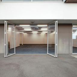 The front bi-fold showroom doors open up to provide vehicle or bulky goods access.