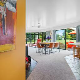 Year-round comfort is assured with a wood burner, heat pump and HRV. Partially glazed (all bedrooms, bathrooms and the ranch slider in family room). Sliding doors from the family room open to a covered alfresco entertaining area with seamless indoor-outdoor living. An area that is perfect for summer barbeques, playtime with the kids, or relaxing in your private garden sanctuary.