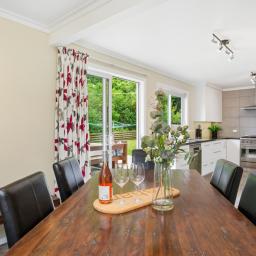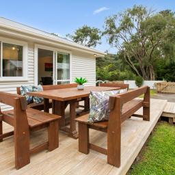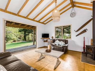 The living and dining spaces extend seamlessly to a large outdoor deck that overlooks the expansive, flat rear section. This generous outdoor area creates an outstanding setting for entertaining, children's play, pets or further landscaping, while also offering genuine scope for future development. The rear portion of the site has already been levelled and fenced, with boundary services in place and no restrictive land covenants, providing a flexible platform for those wishing to explore subdivision or additional building options over time.