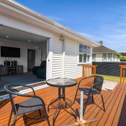 Check out this north-facing front deck. It's the ultimate spot to unwind with a view of the Hawera's iconic water tower. You're just a short stroll from the supermarkets, shops, and everything you need. With a fully fenced, easy-to-care 744 sqm section, a double garage, and plenty of off-street parking, this package is complete.