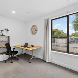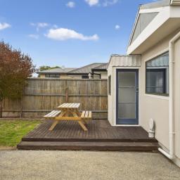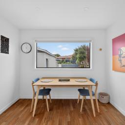 Bathed in sunshine and full of coastal appeal, this delightful home offers relaxed living just a short trip from the beach. The modern kitchen and dining area is well appointed and functional, while the light-filled living room provides a cosy and inviting space to unwind. Two double bedrooms with built-in robes are complemented by a separate study, offering flexibility for families or those working from home. A family bathroom with a separate bath and shower, along with double glazing, a heat pump, a Smart Vent ventilation system, and a separate laundry, ensures year-round comfort.