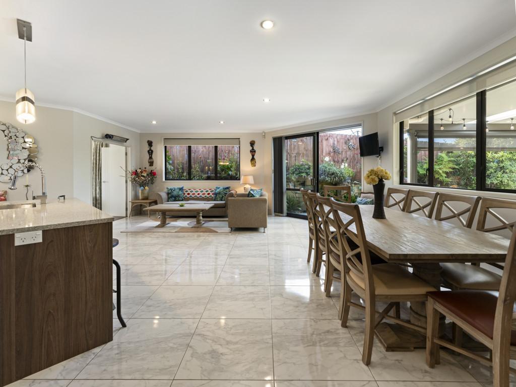 One of this property's standout features is its direct connection to a private reserve at the rear, with scenic walkways perfect for leisurely strolls or kids' adventures, adding a sense of space, serenity, and connection to nature rarely found in Pokeno. The landscaped gardens have been meticulously designed to complement the home, offering a mix of lush greenery, established plants, and well-planned spaces that create a resort-style ambiance.