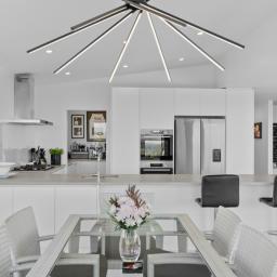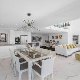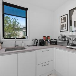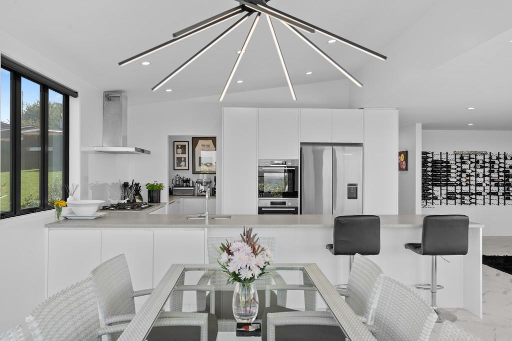 Designed for both relaxed living and sophisticated entertaining, the home centres around a spacious open-plan kitchen, dining, and living area, enhanced by high vaulted ceilings and an integrated wine cellar. The kitchen is beautifully appointed and complemented by a generous scullery, making hosting effortless and elegant.