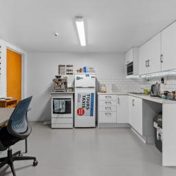 Upstairs, the layout opens up even more possibilities with a bedroom, separate bathroom, and another kitchen or staffroom that flows out to an elevated deck, offering a pleasant breakout space above the bustle below. Two additional rooms provide valuable extra storage, ensuring every square metre is put to good use.