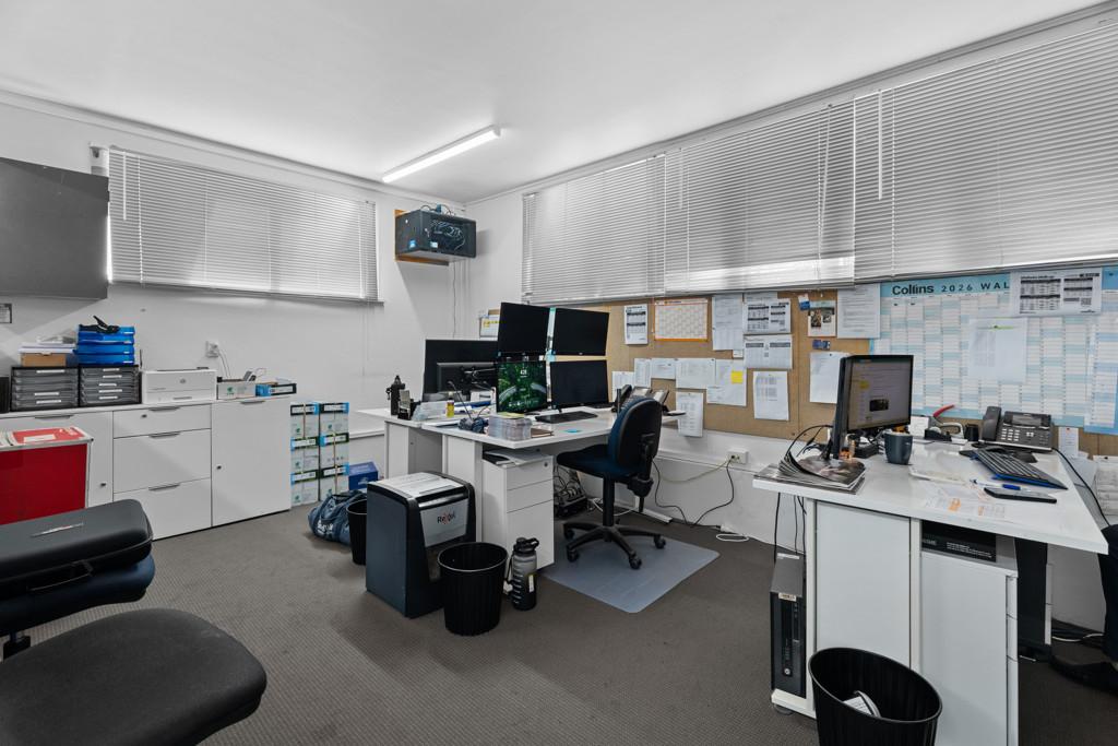 At the road front, a welcoming and spacious office creates a professional first impression, complemented by a kitchen and staffroom that comfortably support day-to-day operations. Beyond, a generous double garage and workshop with impressive stud height and two roller doors provides excellent access for vehicles, equipment or trade use, while a second workshop with a single roller door adds further workspace. A loft area with bathroom facilities and an additional storage room enhances the property's adaptability.