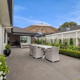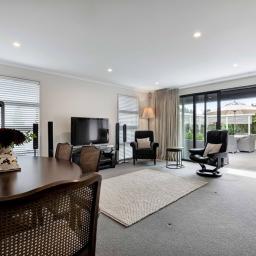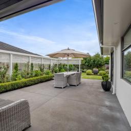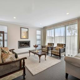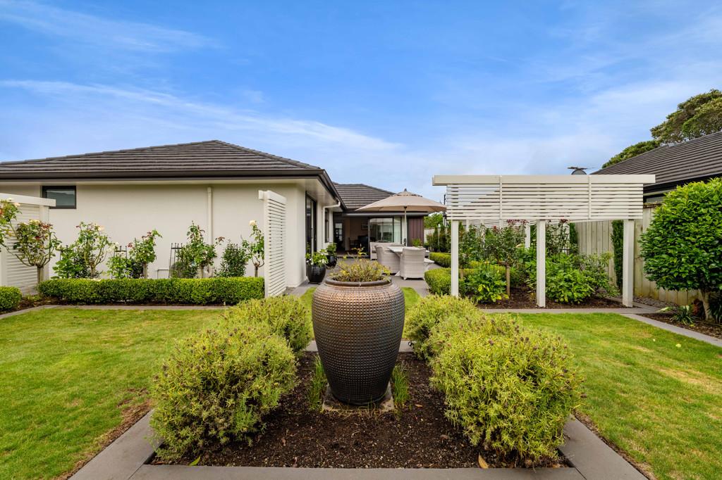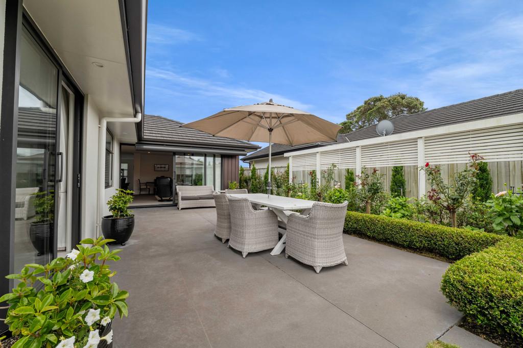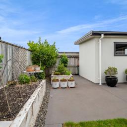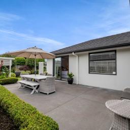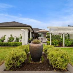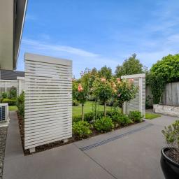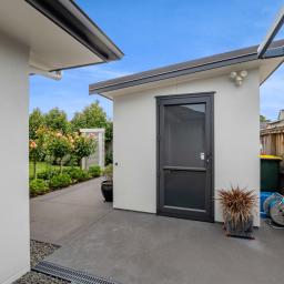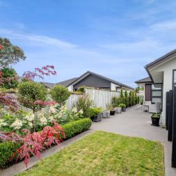 Immaculately presented in Merrilands, this superb near new home invites you to move straight in and enjoy effortless, stylish living. Thoughtfully designed across a flat, low maintenance section, the four bedroom layout delivers space and privacy. Light floods the open-plan living, dining and sleek kitchen, a neutral palette and abundant storage make daily life a breeze. Comfort is guaranteed year round with a gas fire, heat pump and heat transfer system, while a remote-controlled awning shelters the private, flat rear yard so outdoor moments can be savoured in every season. Two generous living areas, a luxurious master suite with ensuite, walk in wardrobe and direct access to the private garden. A custom-built garden shed, crafted in the same style as the home, offers versatile extra space, studio or workshop, blending seamlessly with the property's aesthetic. The double garage with internal access plus extra off-street parking adds practical convenience. Low maintenance planting preserves leisure time for walks on nearby walkways or relaxed afternoons at home. Every detail has been attended to, with all the lovely additions already done, nothing's left to do but move in and enjoy this beautifully presented, comfortable home in a sought-after neighbourhood.