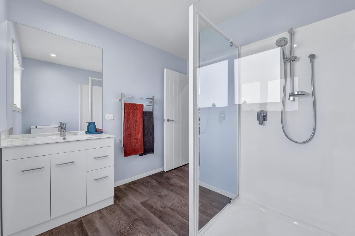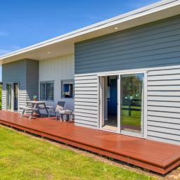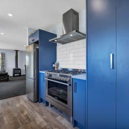 The modern home offers easy, low-fuss living with open-plan spaces, a wood burner and three bedrooms, including a main with ensuite and walk-through wardrobe.
