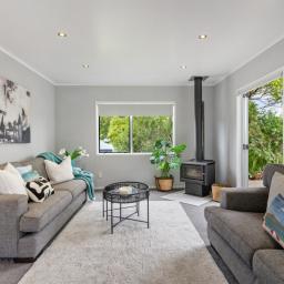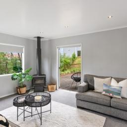 Perfect for extended family or additional income, the lower level flat is fully self contained with open plan living, dining and full kitchen, heat pump, bathroom and direct access to its own sun-soaked deck from both the living domain and the double bedroom.