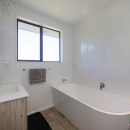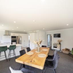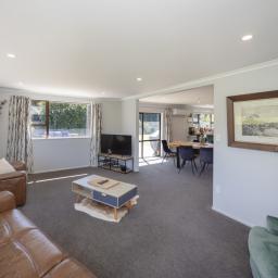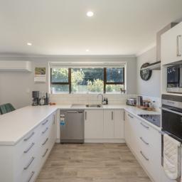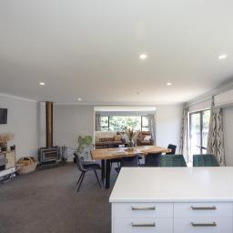 The completely renovated 1990s brick home is beautifully presented and designed for easy family living. Inside, the sunny open-plan kitchen, dining, and living area forms the heart of the home, warmed by both a woodburner and heat pump for year-round comfort. The modern kitchen is well equipped with a wall oven, cooktop, rangehood, dishwasher, pantry cupboard, breakfast bar, and gas hot water, making it ideal for everyday living and entertaining.