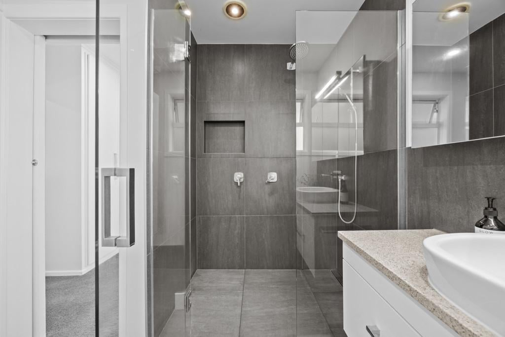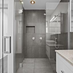 • Contemporary bathroom with quality fixtures