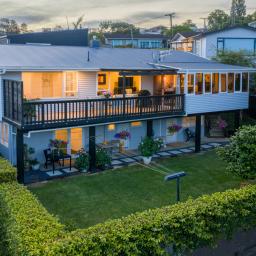 Nestled in a serene, bush surrounded cul-de-sac, this exceptional property offers the ultimate in versatile, multi generational living with views across to Waiheke Island and the Mellons Bay Valley. Meticulously maintained and fully renovated to exacting modern standards, this home presents a unique opportunity for families seeking space, privacy and income potential in the prestigious Mellons Bay locale.
