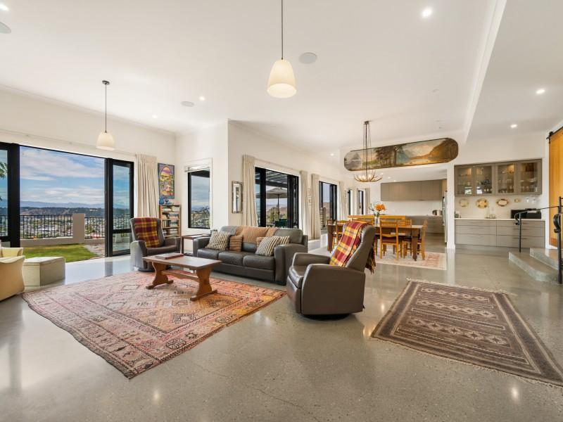 Undoubtedly one of the finest sites on the prestigious Bridge Hill, this exceptional 423m² residence commands uninterrupted panoramic views across Alexandra, the Clutha River, and the majestic Hawkdun Ranges. Completed in 2021, the home is a masterful fusion of contemporary design, comfort, and enduring materials.