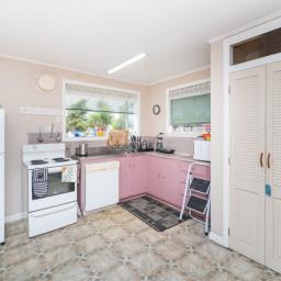 The home comes fully furnished and features three bedrooms along with a single external garage, making it move-in ready and an excellent option as a classic Kiwi bach. Comfort has been further enhanced with double-glazed windows installed throughout approximately three-quarters of the home, helping with warmth, noise reduction and year-round living.