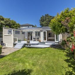 - Three bedrooms, including two doubles. The main bedroom has a walk-in wardrobe and French doors to the deck you'll want to leave open on a summer's night