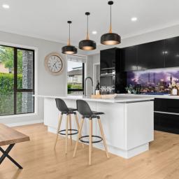 Living unfolds generously across the ground floor. Open-plan living and dining are anchored by a well-resolved kitchen with stone benchtops, double ovens, an electric hob, and extensive storage. A fully appointed scullery sits discreetly behind, complete with its own sink, dishwasher, and dedicated gas cooking station, allowing the main kitchen to remain calm, uncluttered, and social.