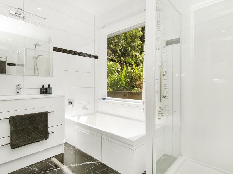 The property extends beyond the interiors, featuring a beautifully landscaped section that guarantees privacy and tranquillity. Outdoor living is a joy here, with carefully planned garden spaces where you can relax or host gatherings. In addition to the double garaging underneath, there are two off-street car parking spots, ensuring ample space for family vehicles or guests.