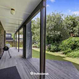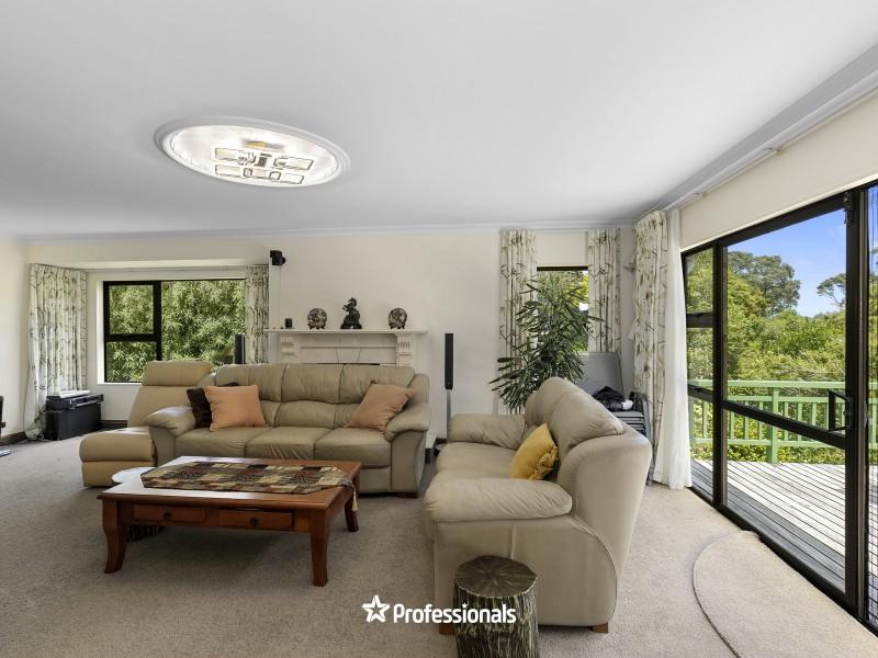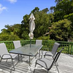 -An entertainer’s deck off the lounge, soaking up all-day sun with tranquil native bush views