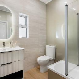 Accommodation is arranged across three well-proportioned bedrooms, all with built-in storage. The upgraded bathroom delivers both style and practicality, with quality tiling and a shower-over-bath suited to both families and professionals.