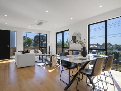 The expansive kitchen is the heart of the home, featuring a large benchtop and premium Fisher & Paykel appliances. Bright open-plan living and dining areas flow seamlessly to a sunny deck and low-maintenance backyard, perfect for everyday living and entertaining.