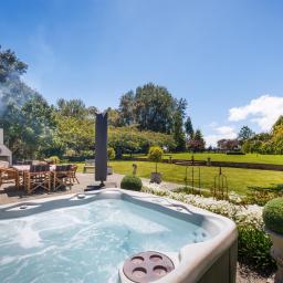 Relax-soak in the spa, while others can enjoy the chit-chat and laughter sitting at the outdoor table setting under the shade of the umbrella. It is a very larger interactive patio, easily accessible from the open plan living/studio areas of the 1950s modernised residence.
