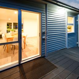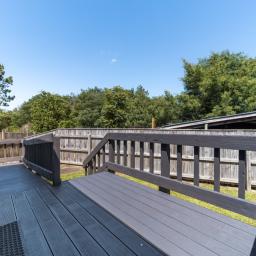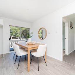 The dining area opens out to a small deck.