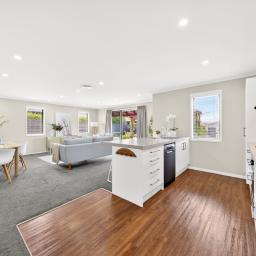 At the heart of the home, the light-filled kitchen overlooks the backyard and gardens, connecting seamlessly to the open-plan living area. Sliding doors invite you outside to a covered patio - the perfect spot for morning coffee, relaxed entertaining, or simply enjoying the peaceful surroundings.