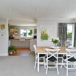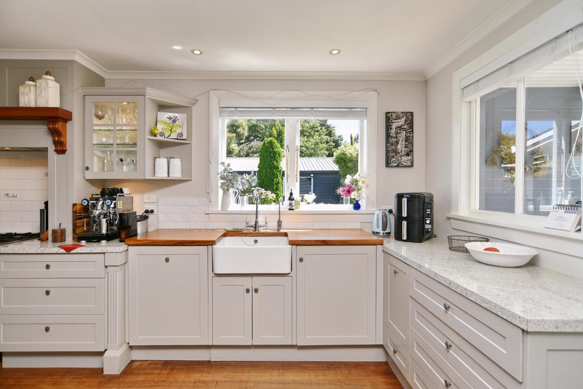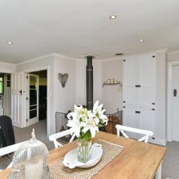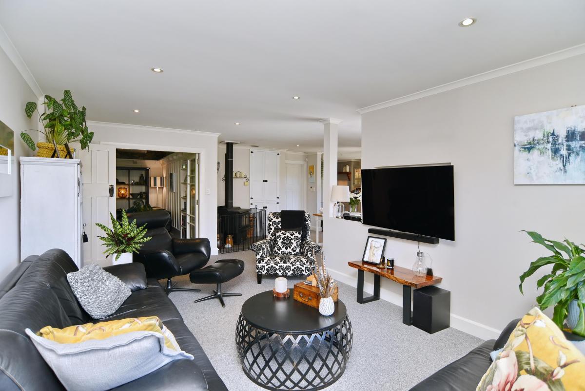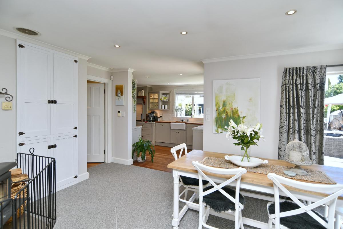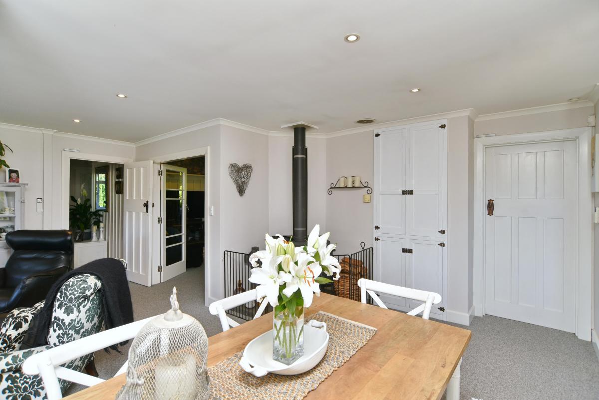 A cosy log burner with wetback forms the heart of the home, enhanced by three heat pumps for modern comfort. Storage is abundant, and practical features such as gas and electric hot water, a double garage plus workshop, and extensive off-street parking ensure everyday ease.