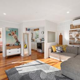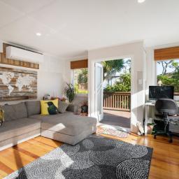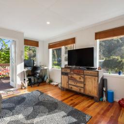 A solid 1960s weatherboard bach set directly across from the Tapu-Coroglen River, elevated and well positioned in one of Tapu's most practical locations. This is a straightforward coastal property that offers the basics done right.