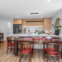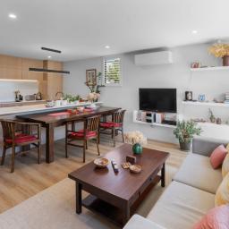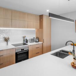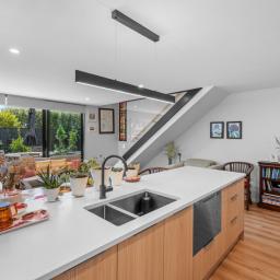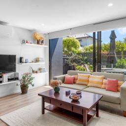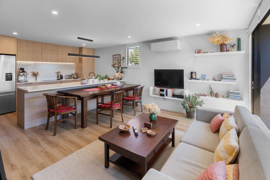 The light filled open plan living and dining area is designed for both entertaining and unwinding, flowing seamlessly to a sunny, private deck - your own peaceful retreat. The sleek, modern kitchen features quality appliances, stylish finishes, and plenty of storage to inspire your inner chef.
