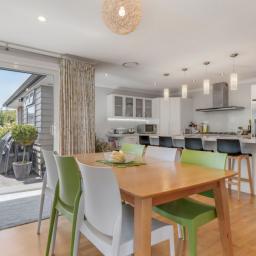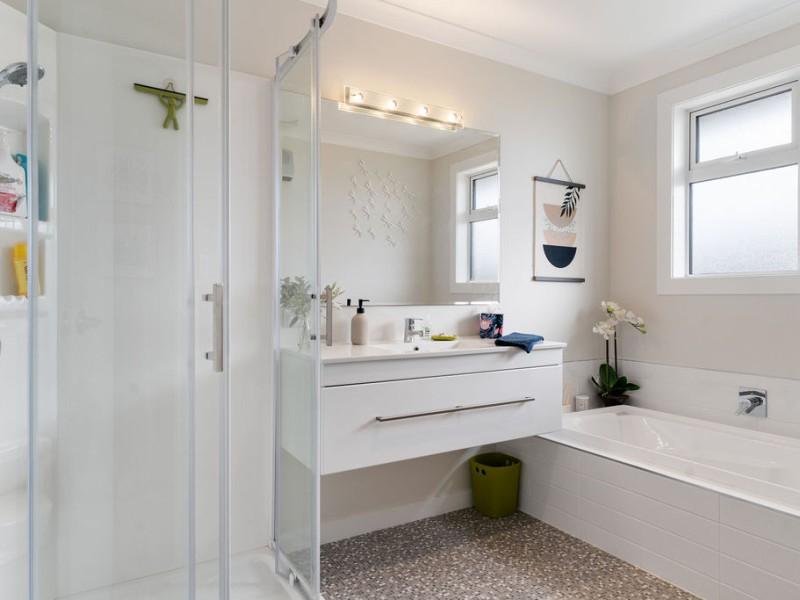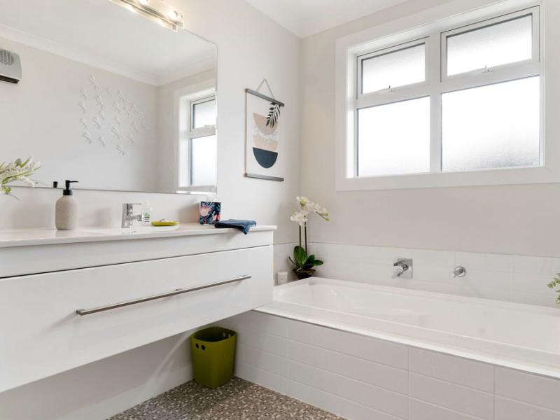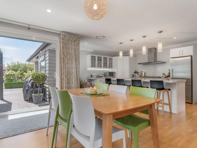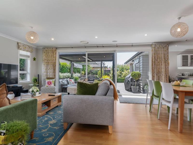 The home features three well-proportioned bedrooms and a family bathroom, plus a master bedroom, complete with walk-in robe, ensuite and stacker doors to the outdoor living space, offering a private haven at the end of the day. Comfort is assured with a ducted heat pump and double glazing, while a separate laundry adds practical convenience.
