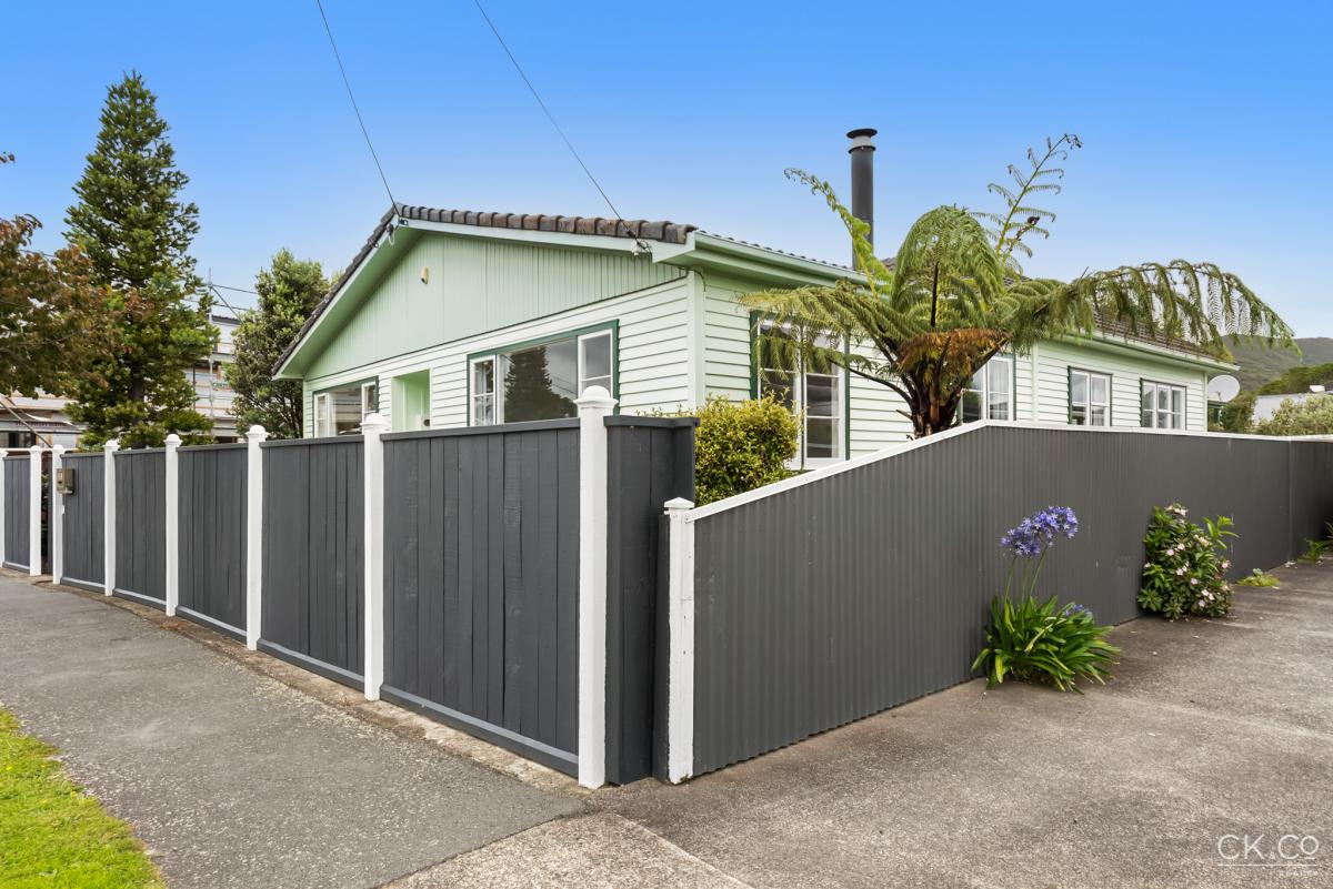 Outside the sunny yard is fully fenced and has a large single garage and workshop. The backyard is private with a deck off the rear of the house, which is sheltered from the northwesterlies.