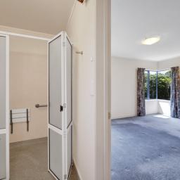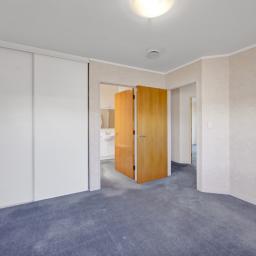 The master bedroom is generously sized and features its own ensuite with walk-in shower, vanity and toilet. Bedroom two has direct access to the main bathroom, making it ideal for guests or shared living. Storage has been a clear priority throughout, with ample cupboards and well-planned storage spaces.