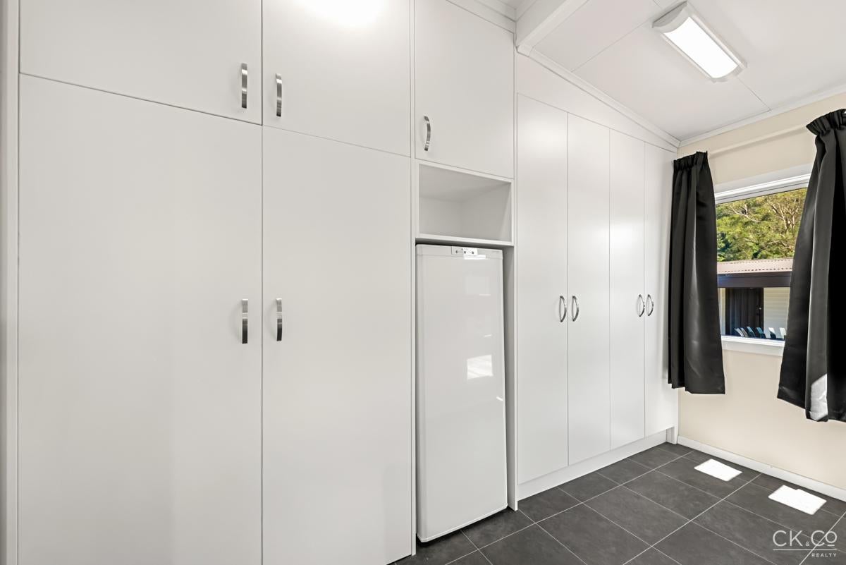 Additional features include a separate laundry with a large amount of storage, single garage with carport, and plenty of off-street parking.