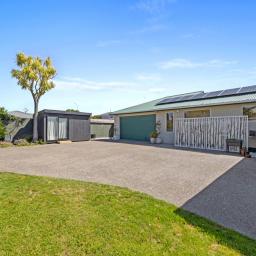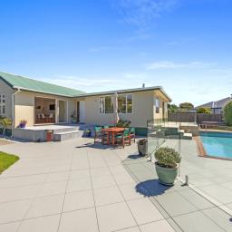 At the heart of the home is a stunning kitchen featuring a stone benchtop with waterfall edge and complete with a plumbed fridge/freezer. You will also find gorgeous wallpaper details, LED lighting and excellent storage. The open plan living flows seamlessly through double ranch sliders to a hard wearing deck, creating superb indoor-outdoor connection and the perfect setting for entertaining or relaxed family time. Multiple living areas provide flexibility for busy households while the feature of having a fire and two heat pumps ensures year-round comfort. The home is fully insulated and positioned to capture the sun throughout the day.