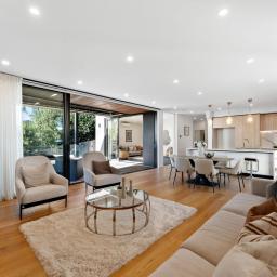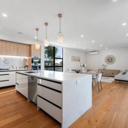 Two separate living areas allow space for both family time and quiet retreat, while the kitchen and dining area form a natural gathering point for daily meals and relaxed entertaining.