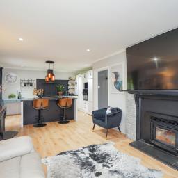 As you step inside, you will be greeted by a warm and inviting atmosphere. The north facing, open plan living and kitchen space has an indoor outdoor flow onto a private covered decking which is perfect for family gatherings and entertaining friends.