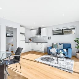Inside, you'll find two modern kitchenettes with crisp finishes, open-plan living, and light-filled bedrooms that make the most of the home's smart design. The clean lines, bright interiors, and contemporary features give the whole space a fresh, welcoming vibe.