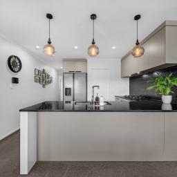 - Open-plan kitchen, living, and dining