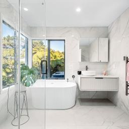 Accommodation is equally impressive, with five genuine double bedrooms, a separate study and two bathrooms, including an ensuite off the main bedroom. Outdoors, tiered gardens, expansive pine decking and a dedicated spa area provide multiple zones for play, hosting and unwinding.