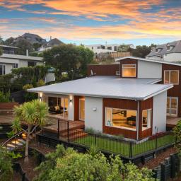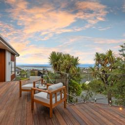 Positioned mid-slope in sought-after Mount Pleasant, this executive hillside residence captures sweeping estuary and ocean views across the coastline, bringing light, outlook and a strong sense of perspective into daily life. Architecturally designed and completed in 2019 this stunning home reflects considered planning, refined family living and sleek contemporary styling, with strong design merit evident throughout.
