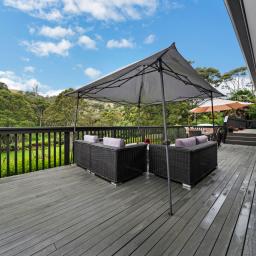 Step outside to discover a beautifully maintained exterior, featuring extensive decking, perfect for entertaining. Enjoy the luxury of being surrounded by lush greenery, stunning bush and rural views, ensuring your outdoor space is both private and serene.
