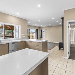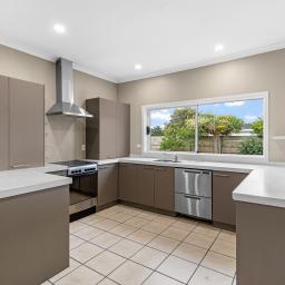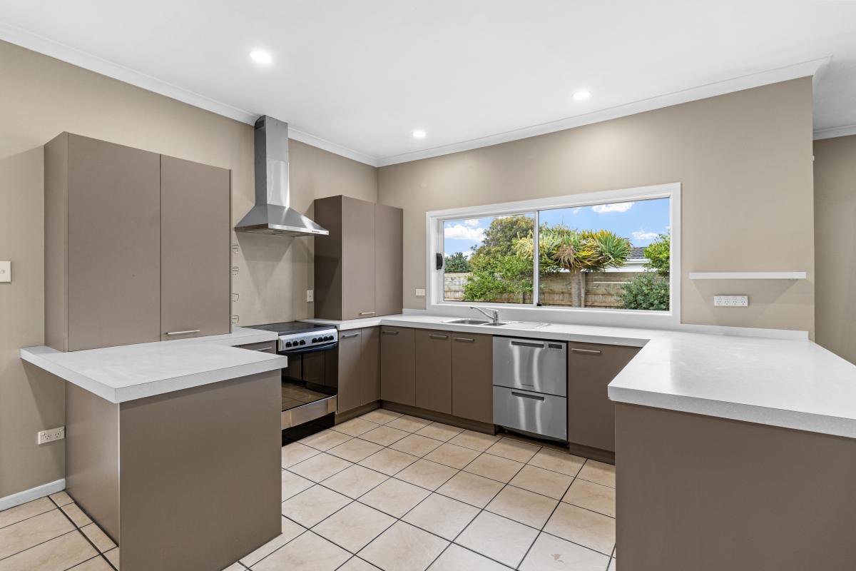 The kitchen links beautifully to the deck via a sliding servery window, making entertaining easy, while generous bench space and storage keep daily life practical.