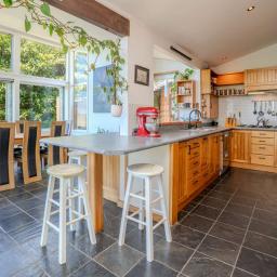 • High ceilings in the main living and sitting room with open fireplace, & wood burner