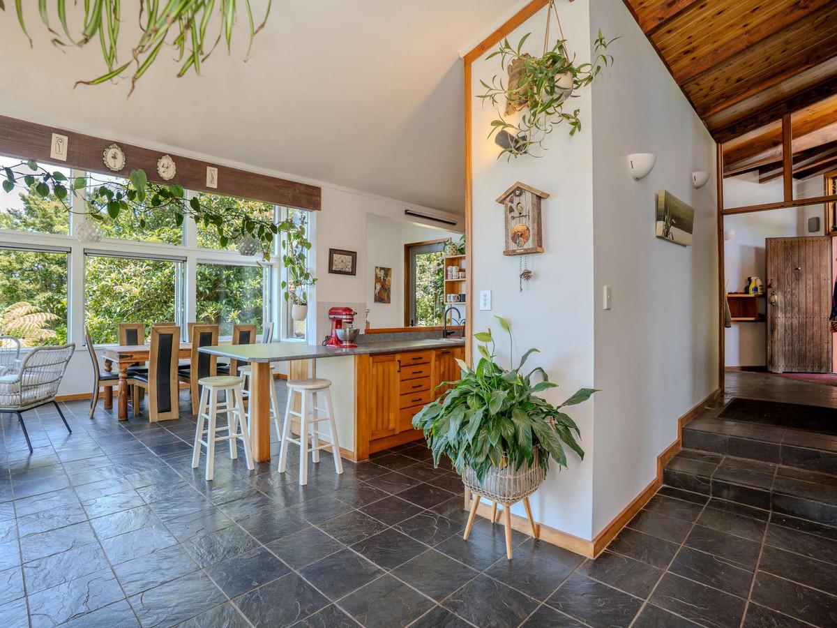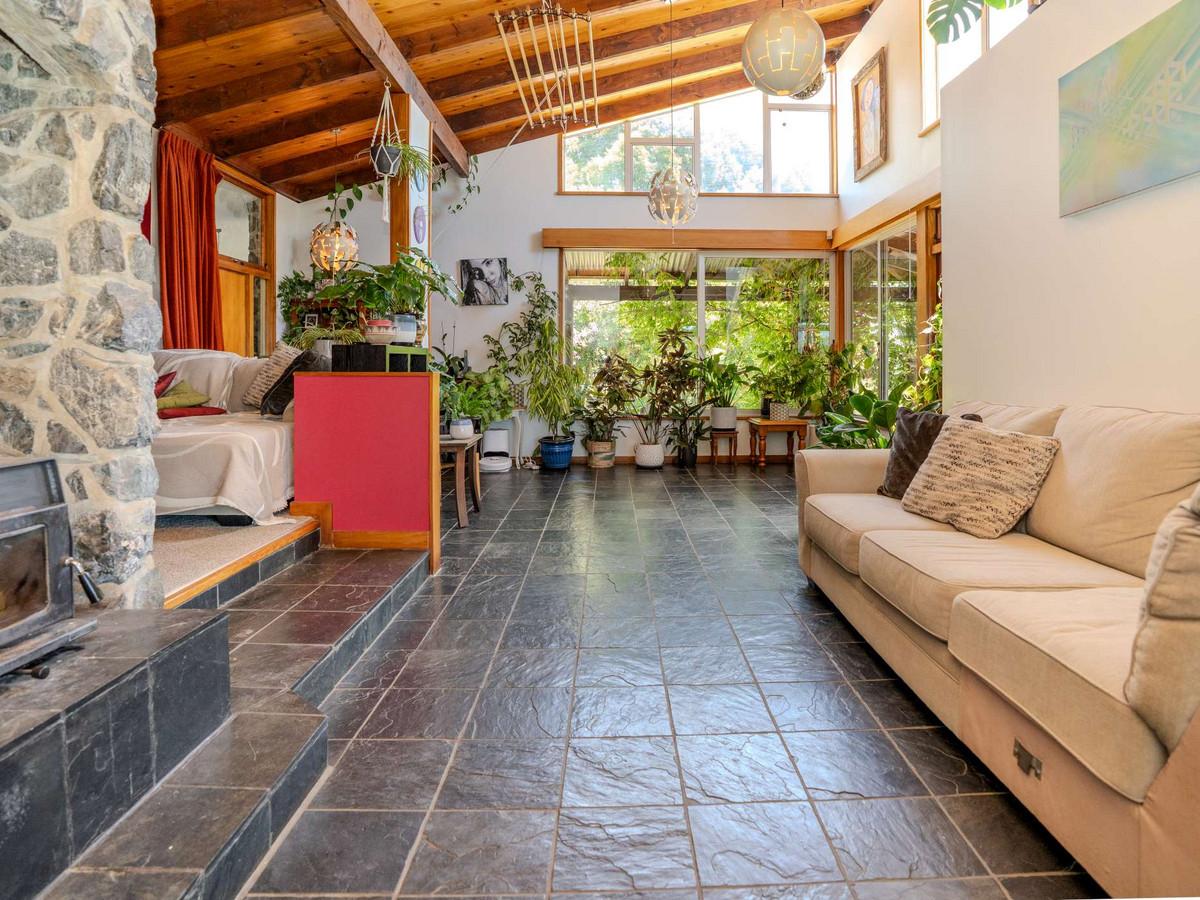 Quietly positioned within a peaceful rural landscape, this architecturally designed cedar-clad home invites you to slow down and truly enjoy the lifestyle it offers. Natural materials, feature schist stonework and soaring vaulted ceilings create warmth and character, while the crackle of the open fireplace and wood burner set the scene for cosy winter evenings. Sunlight pours into the living spaces, and from the dining area, elevated rural views provide a beautiful outlook that changes with the seasons. Features include: