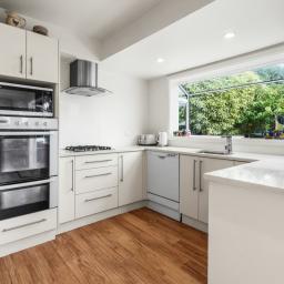 Sun-filled open-plan living forms the heart of the home, where a light and bright kitchen anchors the space with clean lines, and a lovely bay window overlooks the picturesque garden. The kitchen flows seamlessly to the spacious outdoors creating a welcoming environment for everyday family life and entertaining.