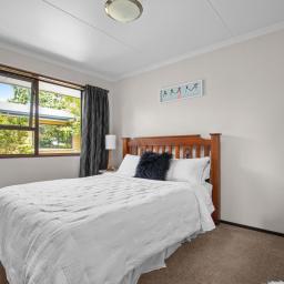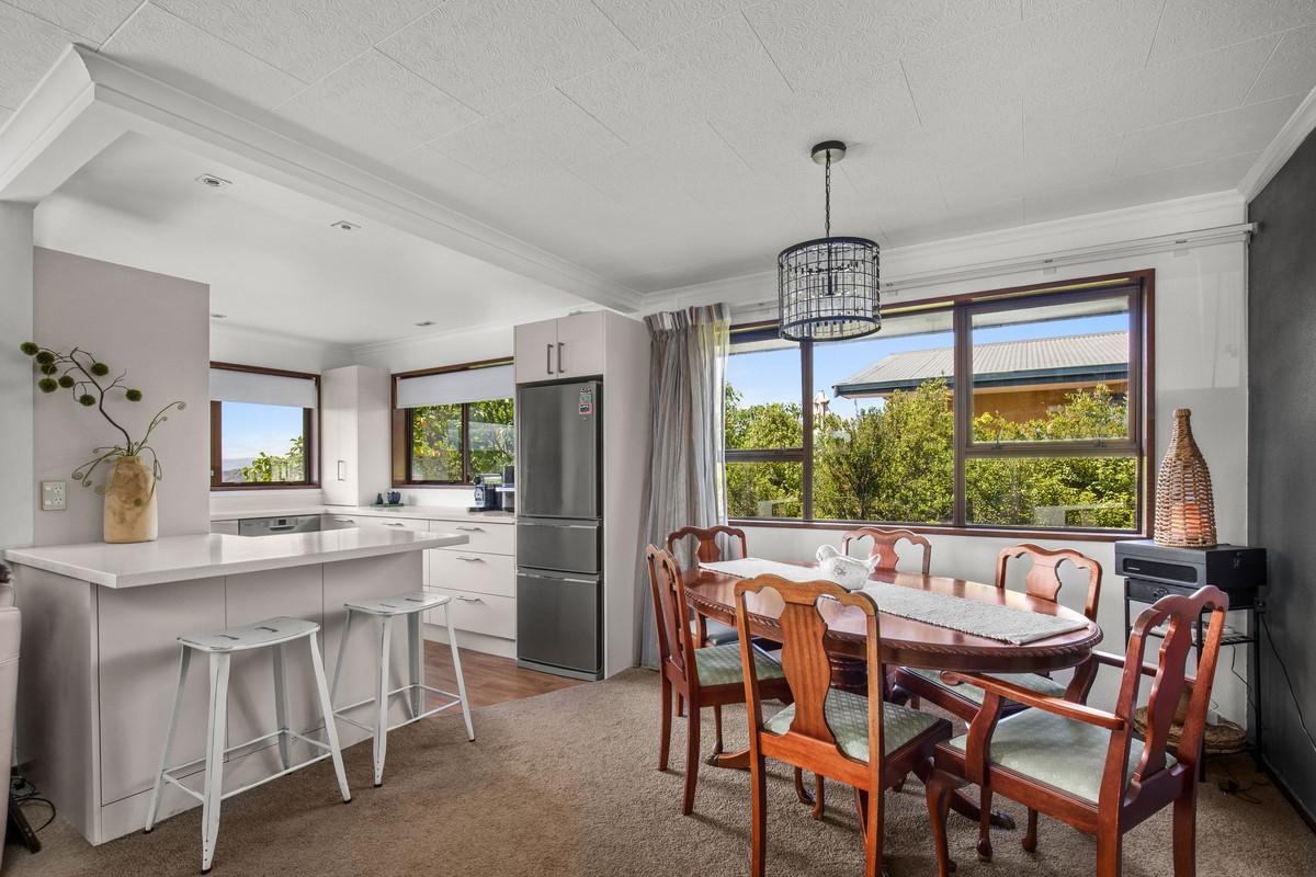 Positioned proudly on sought after Bridge Hill, this solid brick home captures truly expansive views stretching as far as the eye can see. Warm, inviting and well designed for comfort and connection as the open plan living zone flows effortlessly outdoors to inviting garden spaces. The open plan living area is light filled, complete with double glazing, a log burner and heat pump for year round comfort. Three well proportioned bedrooms include two with direct access to the outdoors. The bathroom is well appointed with a separate shower, vanity and indulgent spa bath, plus the convenience of a separate toilet. Downstairs, a generous double basement garage with workshop space offers plenty of room for vehicles, storage or hobbies. Outside you will discover lovely outdoor living spaces, a green house, fruit trees and a unique lifestyle bonus: a reserve and dam just beyond the back gate, creating a peaceful, private backdrop for kids to explore or couples to unwind.