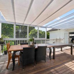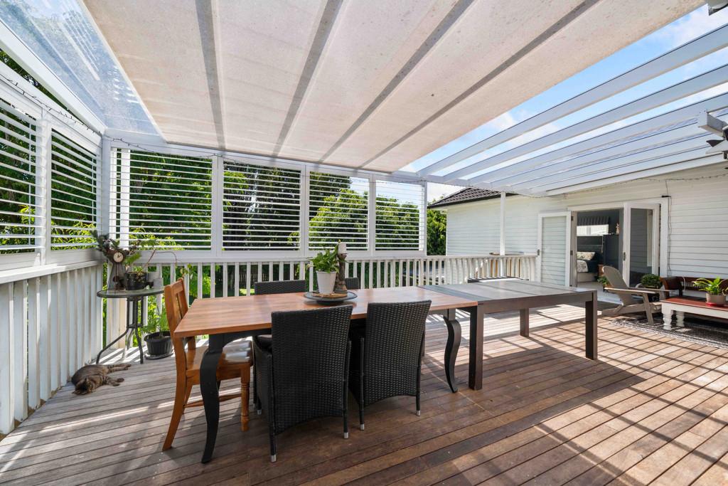 • Sun-drenched deck with fully functional canopy - perfect for entertaining or relaxing outdoors in any weather.