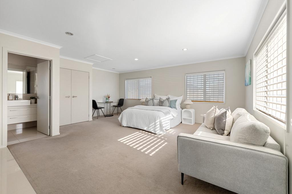 Upstairs, the master bedroom is complemented by its own ensuite, with additional bedrooms serviced by a family bathroom. The separation of living and sleeping zones creates a practical, liveable flow that supports larger households without compromise.