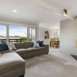 The open plan living/dining area is ideal for entertaining or relaxing, fitted with ranch sliders allowing for the easy transition to your timber deck.
