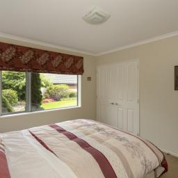The home includes four well-appointed bedrooms. The master suite is complete with a walk-in wardrobe, ensuite with a wet-floor shower, and french door access directly to the garden. The remaining three bedrooms are all generous in size, each with large wardrobes, with two also offering TV ports for added convenience. The family bathroom includes a shower, bath, and vanity, with under floor heating, complemented by a separate adjacent toilet.